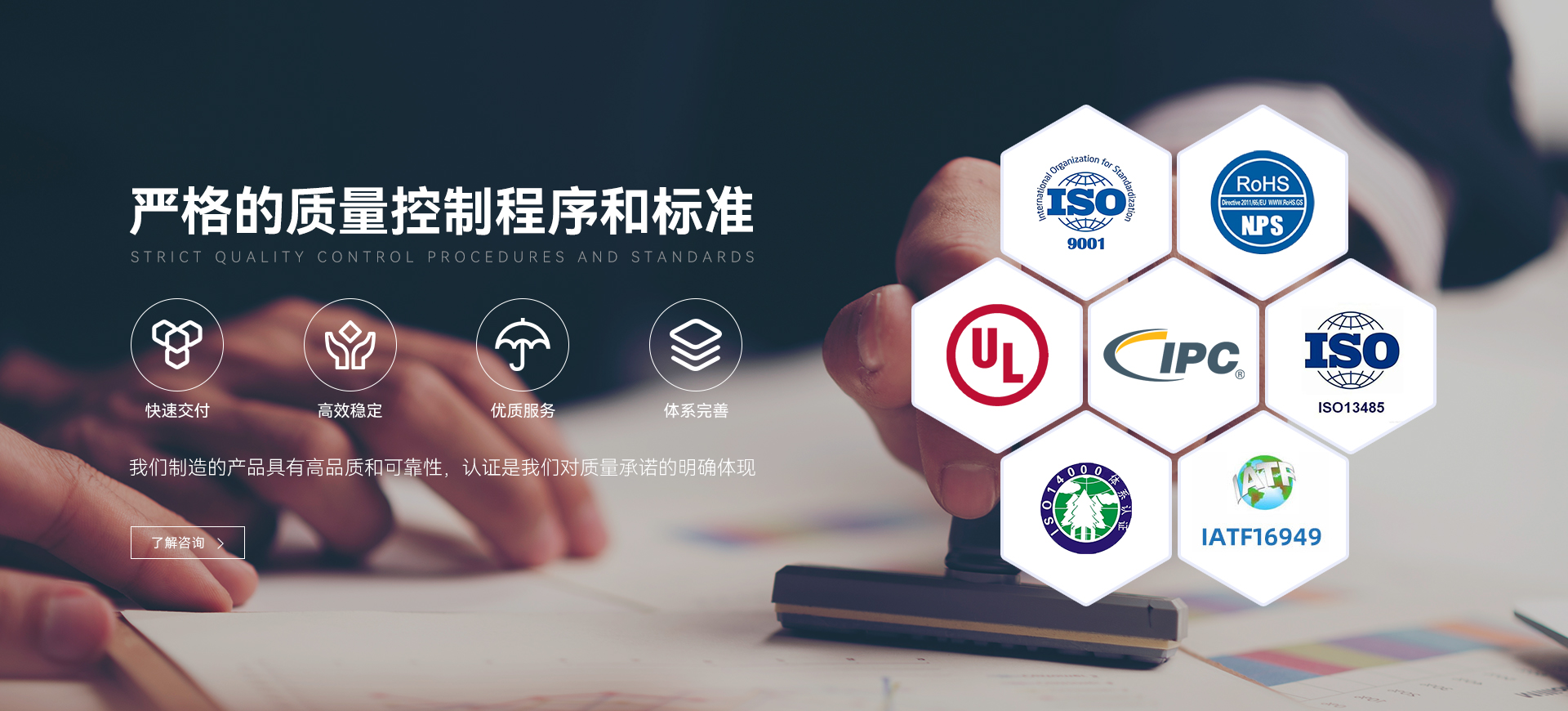 優質原材料,從源頭保障產品質量 差異化工藝能力,滿足各項制板要求 嚴謹的品質控制系統 快速靈活的交期
